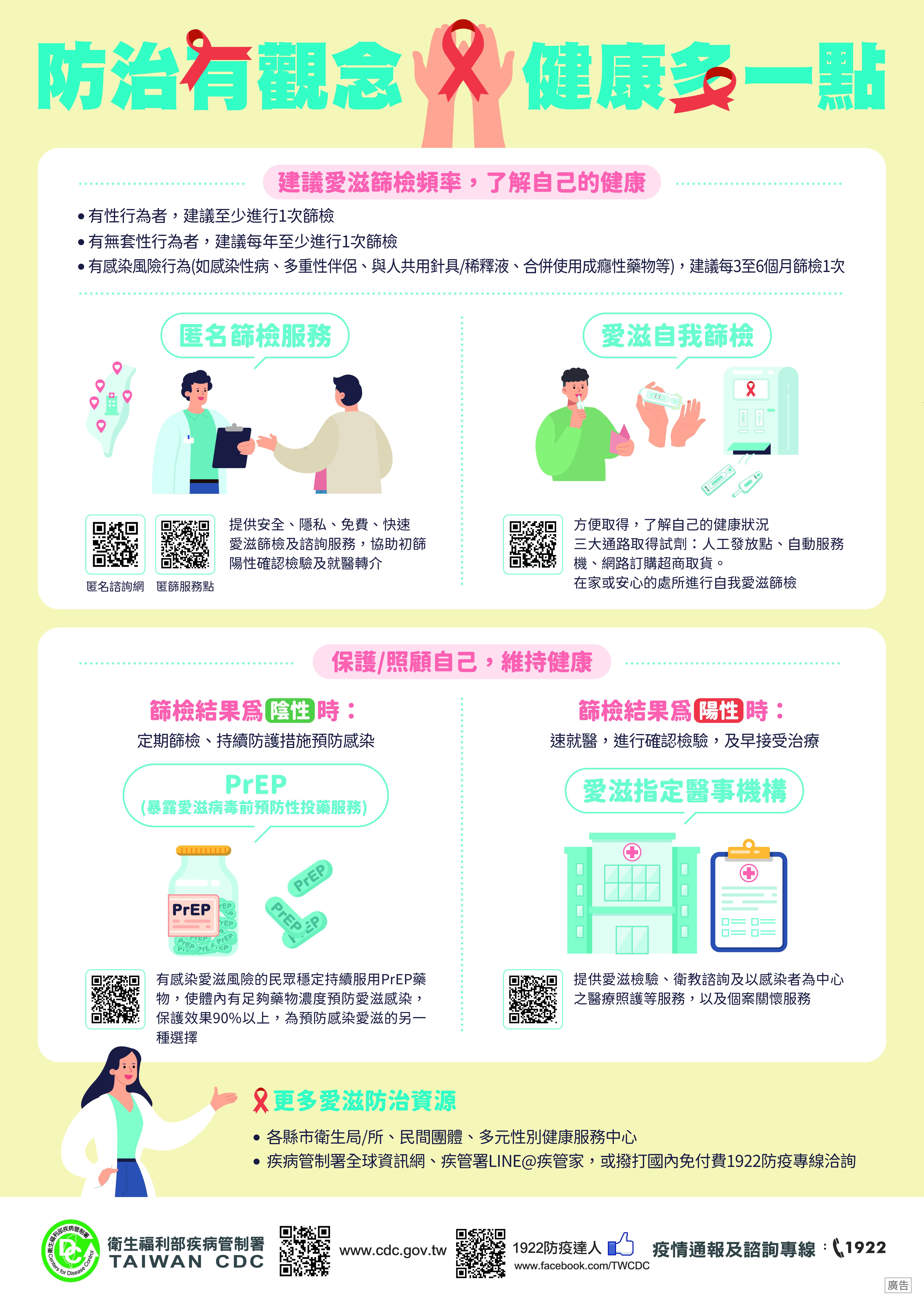 三、前揭愛滋及性傳染病相關衛教宣導資料,已置於疾管署全球資訊網(https://www.cdc.gov.tw/)「傳染病與防疫專題/傳染病介紹/第三類法定傳染病/梅毒、淋病或人類免疫缺乏病毒(愛滋病毒)感染/性傳染病衛教資源/一般民眾」項下;或至疾管署網站首頁之「性傳染病衛教資源」專區查詢及下載運用。